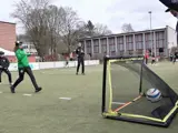 ohne Torwart gespielt, wobei die Mini-Tore 1m entfernt und mittig vor den Banden