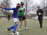 zusammen, um erstmals Eins gegen Eins Turnierspiel Wettbewerbe im Blindenfußball zu