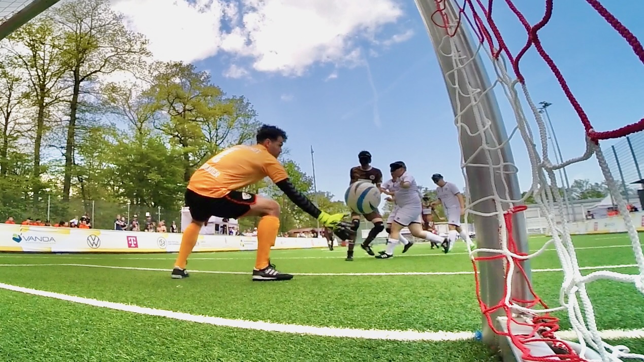 2:0 Natan Werner. „Ich bin nach einer Ecke von rechts erst raus, dann wieder über die Grundlinie zum Tor des Gegners gedribbelt, dann habe ich Jonas unseren Guide gehört, und habe abgezogen. Mit links flach ins rechte kurze Eck getroffen.“